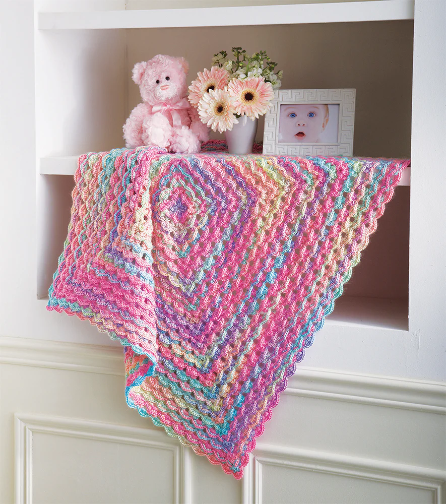 Indulge in the cozy comfort of our Textured Granny Blanket. Crochet a large granny square, this simple yet stunning baby blanket will add a touch of style to your little ones room. Snuggle them in the warmth and charm of this colourful blanket. Kit includes Mary Maxim Prism yarn and instructions. Requires crochet hook size 4.50 mm. Finished size: 36 x 36". Intermediate Crochet.